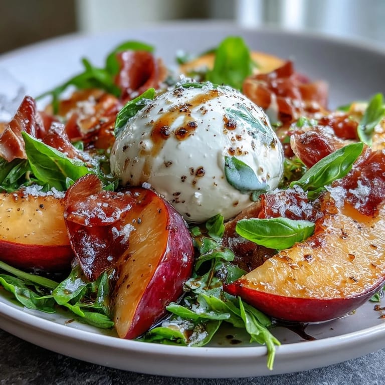 Save The first time I threw together this burrata and peach salad, the kitchen was sunlit and quiet except for the gentle sizzle of the balsamic bubbling on the stove next to me. My hands were sticky from slicing ripe peaches that smelled almost floral, and curiosity about pairing them with prosciutto nudged me on. Sometimes, the best ideas come from a craving for something both fresh and creamy—and this was one of those days. There was no big plan, just a hungry urge for summer flavors colliding on a platter.