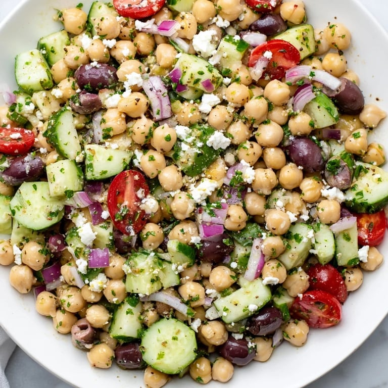 Save There's something magical about throwing together a Mediterranean chickpea salad on a lazy afternoon when the fridge is half-empty and you're craving something that actually tastes like summer. I stumbled onto this version during a particularly warm week when my farmer's market haul was screaming to be used before it wilted, and I realized that sometimes the best meals come together in the time it takes to brew a cup of tea. The chickpeas were already there, the lemons were practically glowing on the counter, and within fifteen minutes I had something so bright and satisfying it became my go-to answer when friends asked what I was making for lunch.