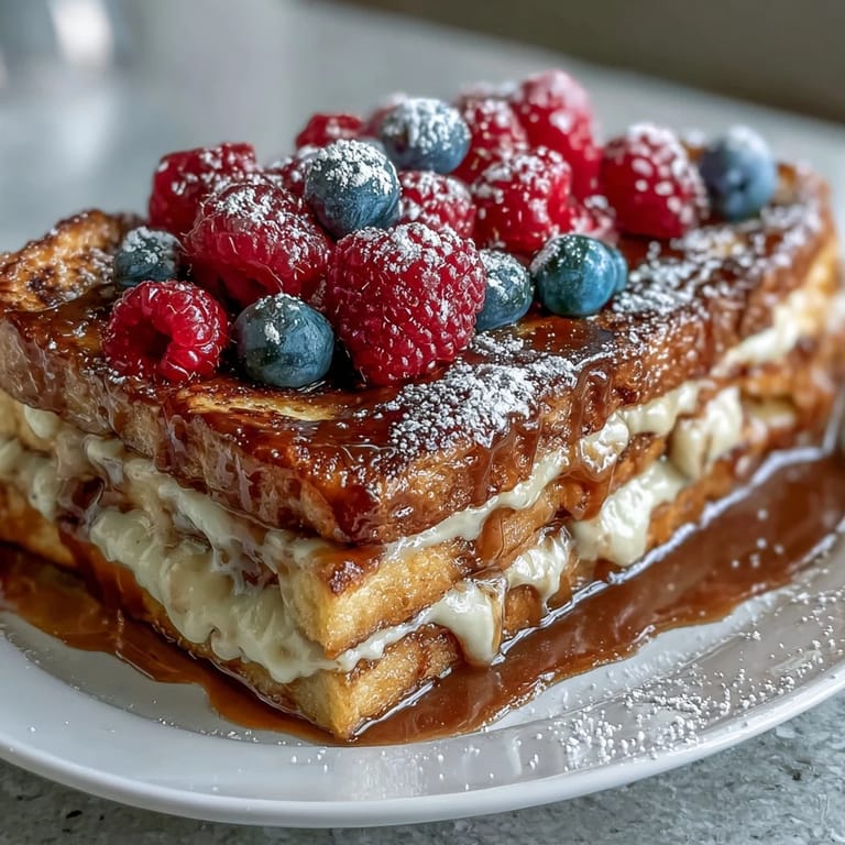 Add a handful of chopped nuts or a swirl of cream cheese between the pancake layers for extra richness. For a dairy-free version, substitute almond or oat milk in the custard (adjust the pancake recipe accordingly). You can also swap mixed berries for seasonal fruit favorites.