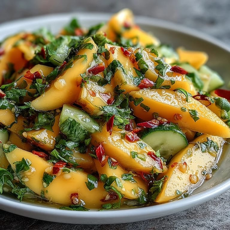 Save A neighbor from Thailand once brought over a bowl of fruit salad that made me rethink everything I thought I knew about lettuce-free dishes. It wasn't drowning in cream or sugar, just clean slices of mango tangled with crisp pepper and a dressing that tasted like sunshine with a bite. I scribbled down her tips on a napkin, tweaked the proportions over a few weekends, and now this salad shows up on my table whenever the air gets warm and I crave something that wakes up my taste buds without weighing me down. The sweetness of ripe mango plays off the lime so beautifully that even picky eaters reach for seconds.
