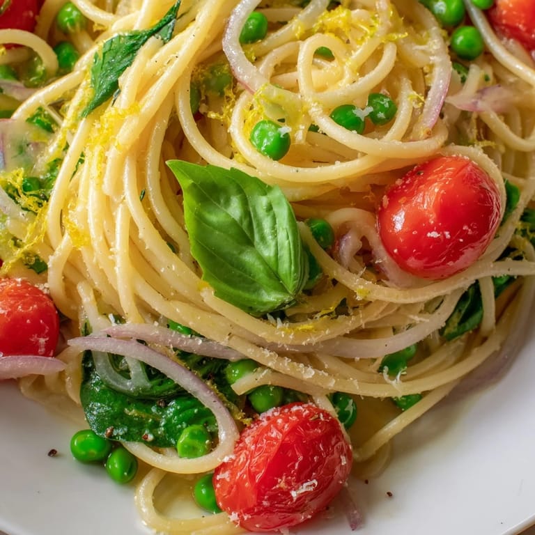 Save The first time I made this one-pot pasta, I was genuinely skeptical about tossing everything in together. But watching the spaghetti transform in that bubbling broth, absorbing all those bright spring flavors, completely changed my mind about weeknight cooking. My kitchen filled with the most incredible aroma of garlic and tomatoes, and I found myself literally leaning over the pot, inhaling deeply. It was one of those rare moments when something incredibly simple tasted absolutely extraordinary.