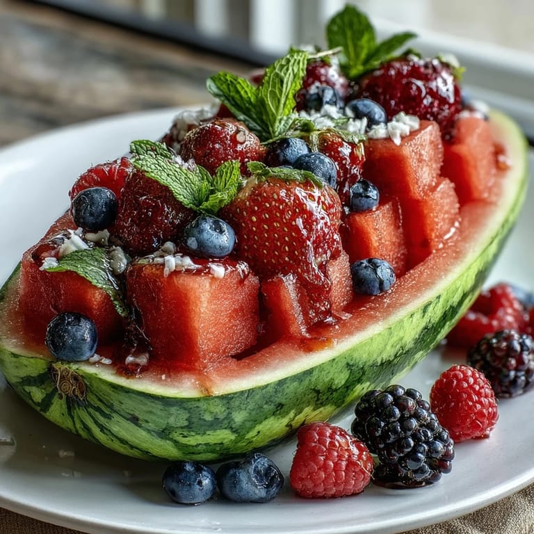 I made this for a potluck once where everyone brought the typical casseroles and chips, and I'll never forget the moment someone's face lit up when they saw this rainbow of berries spilling out of the watermelon. A little kid asked if it was safe to eat the bowl, and when I said yes, she treated the whole thing like edible art. That's when I realized this wasn't just a fruit platter anymore—it was an experience that made summer feel special.